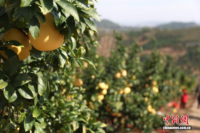 11月19日,江西上饶,重甸甸的文旦挂谦枝端。中新社记者 刘占昆 摄