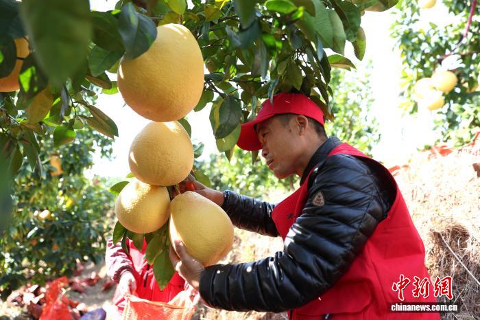 11月19日,江西上饶,果农正正在采戴老练的马家柚。中新社记者 刘占昆 摄